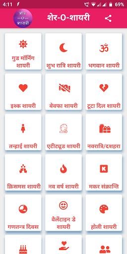 You can find and share Shayaris from the following categories -