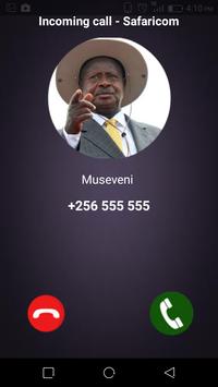 This app allow you to make a fake incoming call from Yoweri Museveni, a game application where simulatorb a important people is calling you!