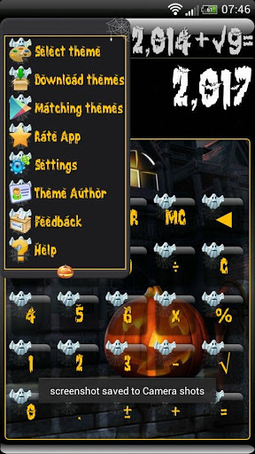 HALLOWEEN Theme for Skinnable Calculator, change skin, wallpaper and font. Themes for the Skinnable Calculator can be downloaded from the Play Store.