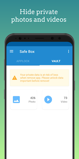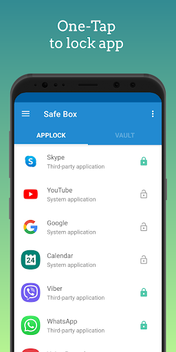 Safe Box is a free app lock and privacy guard to prevent intruders & snoopers from peeping at your private data, hide sensitive photos and videos by encrypting your Gallery, keep children or snoopers away from messing up your settings, deleting important things or making in-app purchase.