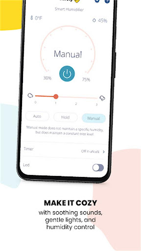 ◆ Choose from three modes: Auto-humidity, Manual Control, or Hold