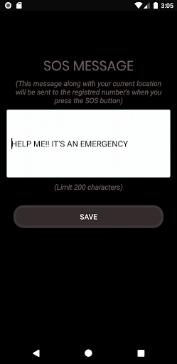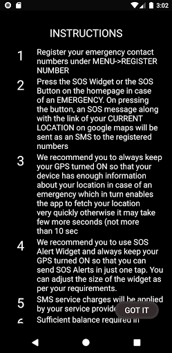 3. When the countdown ends, the app fetches your location from the GPS on your device and sends (through SMS) your location along with your SOS Message (which is pre-saved on your device) to the emergency contacts that you have registered in the app