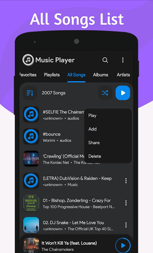 - Custom Playlist, set albums, artists, genres, folders songs to playlist