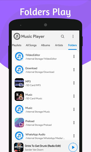 Manage all of your music and songs easily, This music player is not only based on artists or albums, but also based on the folder structure.