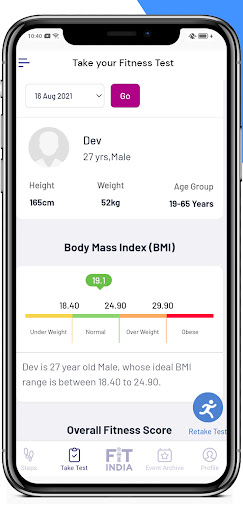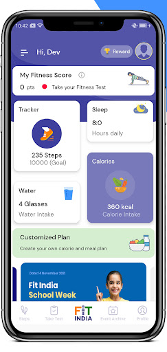 The Fit India Mobile App is one of its kind App wherein citizens can assess their fitness parameters through a series of simple tests and further get ways for the improvement of fitness on regular basis.Additionally, Fit India Mobile App is having features like setting daily activity and fitness goals, activity tracker, water intake, calorie intake and sleep tracker etc.