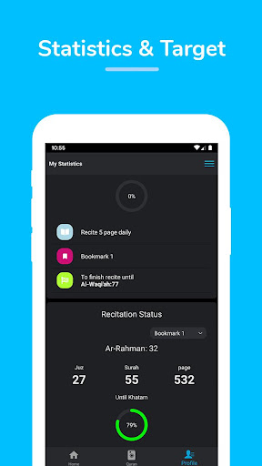 - Recitation statistics and progress tracker