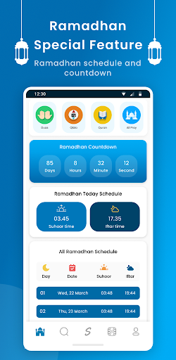 You can get for learning and reading purposes during prayer times Quran, Duas, Salah, Surah Yaseen, 99 names of Allah, hadith and hajj umrah guide.