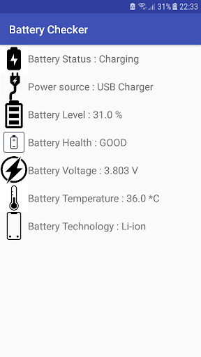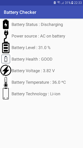 Measure the charging, discharging, power source, level, voltage, temperature, health and technology of your battery