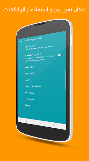 امکان بازیابی رمز و استفاده از اثر انگشت در صورت وجود سخت افزار گوشی