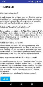 A trading robot is a software program. Once the program is installed into your trading platform, it can take trades automatically. You can be asleep, working, or spending time with your family and it can take a trade.
