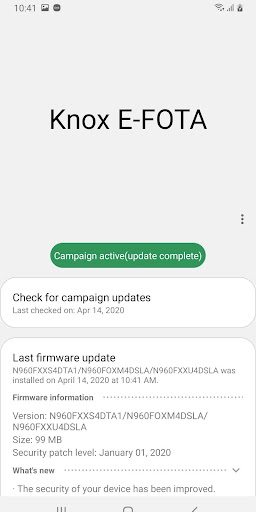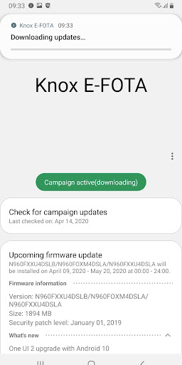 The Knox E-FOTA agent works only when your device is registered on the Knox E-FOTA console by your IT administrator.