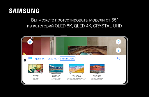 AR para Samsung TV ayudará a localizar virtualmente y ver a Qled 8K Linek TVS, QLED 4 y Crystal UHD a escala real a escala real en su interior!