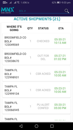 Point-to-Point Logistics at Your Fingertips! With MNX Mobile enterprise organizations can: