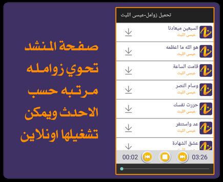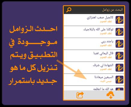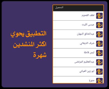 يحوي التطبيق على زوامل اشهر المنشدين ومنهم