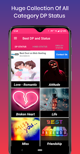 This app has good collections of Profile Dp's and Status quotes for your accounts. This Dp & status app is completely free with latest collections.