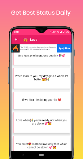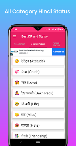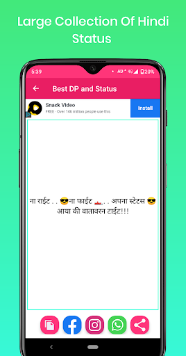 इस ऐप पर आपको हर प्रकार के स्टेटस मिल जायेगे। जिससे आप अपने हिसाब से शेयर कर सकते हैं। और हर दिन अभी कैटेगरी के स्टेटस अपडेट होते हैं। जिससे आपको रोज नए नए स्टेटस मिल जायेगे। तो अभी डाउनलोड करे और एन्जॉय करे Best DP and Status App.