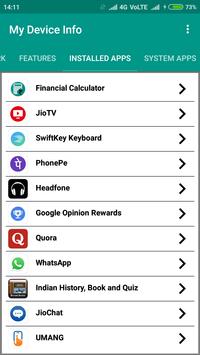 This app lists all the hardware info along with your device charging and connectivity information in real time and also displays all the system and installed apps.