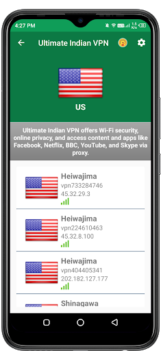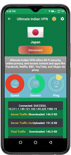 This VPN aims to provide you ultimate servers with unlimited bandwidth. Ultimate Indian VPN has large number of premium servers with no data limit. It also has integrated speed meter which tells you the speed of every server which you want to get connected.