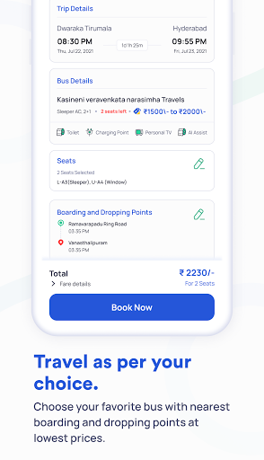 As a frequent long journey traveler, you will find that the app lets you book bus tickets very easily and never lets you loose focus on the information that you are entering. You will be able to search routes from over 3000 operators and 31000 places in India.