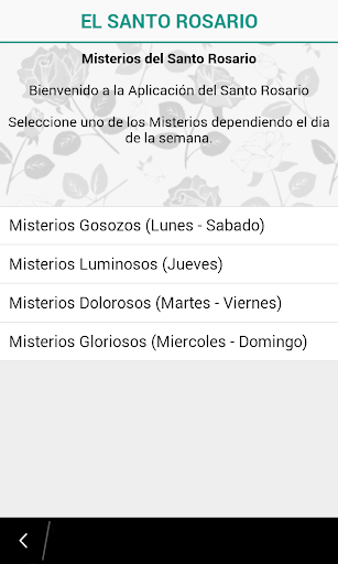 Cada serie de misterios comprende cinco temas distintos para la meditación, cada uno de los cuales representa un momento de la vida de Jesús y de la Virgen María, la madre de Jesús. El rosario representa las Rosas, a modo de oración que son ofrecidas a la Virgen María, en sus distintas etapas de la vida a modo de misterios.
