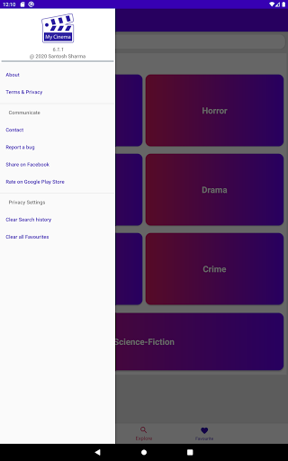 My Cinema app is developed by Santosh Sharma using The Movie Database (TMDb) API. It allows you to explore cinema (synonym for movies) database where you are able to search movies, find the movies based on recent releases, upcoming, top-ratings, actors and the themes.
