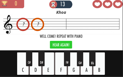 - Game play đơn giản, dễ hiểu - Hãy dùng cảm âm của bạn để đoán lần lượt các nốt xuất hiện trên khuôn nhạc - Dành những điểm số cao nhất và chia sẻ với bạn bè của bạn