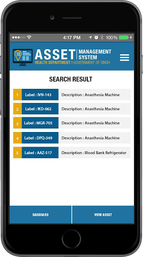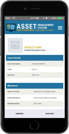 This application is for the sole use of the Sindh Health Department through which user enter and update assets by using mobile device on the field. An inspector may visit any location and with the help of his mobile device quickly match the physical assets on the ground with what is in the database.