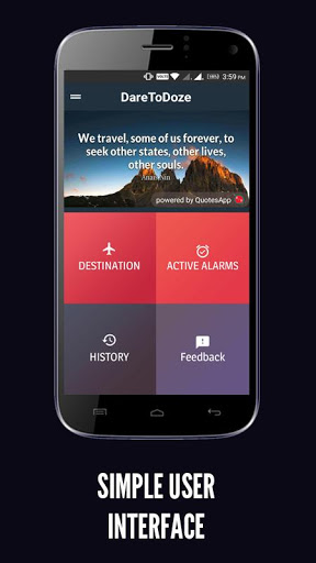 Here is a tool to help you! Dare to doze is your companion that stays by you all the way to wake you up just on time in case you doze off. Simple and interactive user interface enables you to use the app with ease. Gone are the days when daily commuting came with a worry of dozing off in a train and reaching late at office.