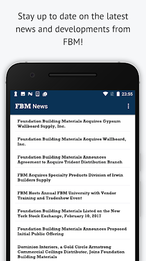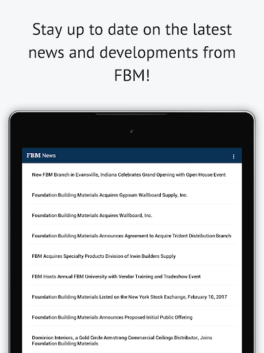 Get in gear with the Foundation Building Materials (FBM) Mobile App. Designed specifically for construction professionals, the FBM Mobile App provides easy access to the following important business related information.