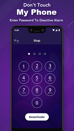 Don't touch my phone alarm System is a new great Motion Alarm utility app. Cool and simple phone Alarm security & find my phone when touched. Protect your mobile security If your friends want to watch your private photos or videos or If anybody wants to get your personal data from your device or If your family persons are using your mobile when you are not there. Background process will start immediately after clicking active button Dont Touch My Phone (Motion Alarm).