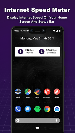 Internet Speed Meter Lite displays your internet speed in status bar and shows the amount of data used in notification pane. This helps you to monitor network connection anytime while using your device.