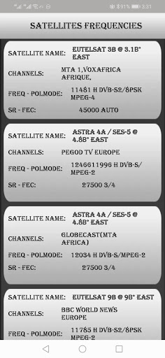 This dishpointer app helps you to align your satellite dish based on your location and the selected satellite.