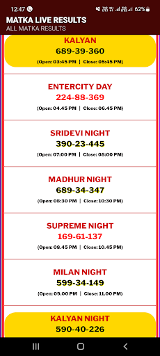 Hello Visitors We Launches Application Update, Where You Get Fastest Satta Matka Result Of Kalyan Matka, Bhootnath Day/Night, Milan Day/Night, Rajdhani Day/Night Etc. We Also Provide Daily & Quickly Updated Charts, Records And Free Matka Guessing Tips