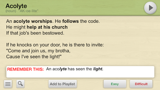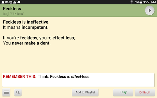 A GREAT FEATURE designed with Teachers in mind: PLAYLIST! Create a list of words for focused study—perfect for classroom use. Save as many individualized PLAYLISTS as you like.
