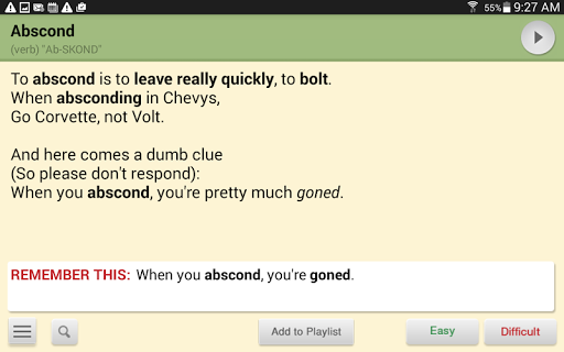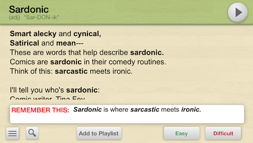 But your memory will LOVE the rhyme, audio, and “REMEMBER THIS” clues in the SAT Word Slam™ app. You’ll be amazed by how quickly you’ll learn the meanings of words and how well you’ll remember them months and years from now.