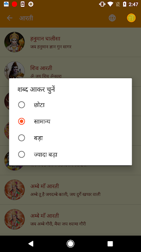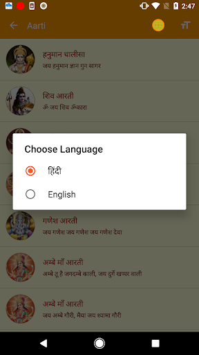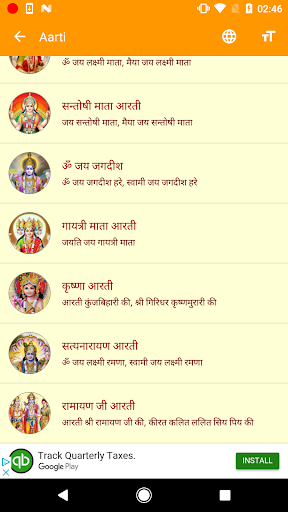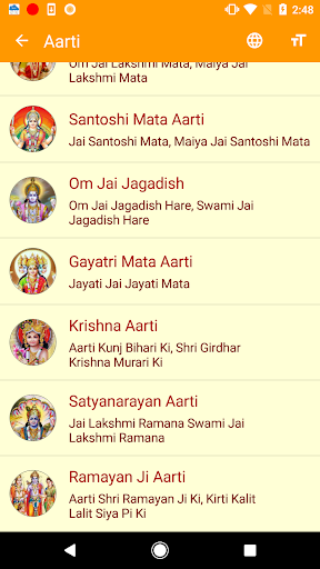 Ganesh Aarti, Hanuman Aarti, Krishna Aarti, Laxmi Aarti, Ram Aarti, Ramayan Aarti, Sai Aarti, Sai Hindi Aarti, Sai Marathi Aarti, Saraswati Aarti, Shani Aarti, Shiva Aarti, Vishnu Aarti, Durga Aarti