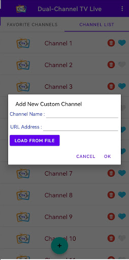 - You can add new channels by entering the name and m3u URL of the TV channel