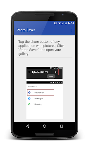 "Photo Saver" Can save/download any picture with "Share" button in any application to your gallery and to your phone.