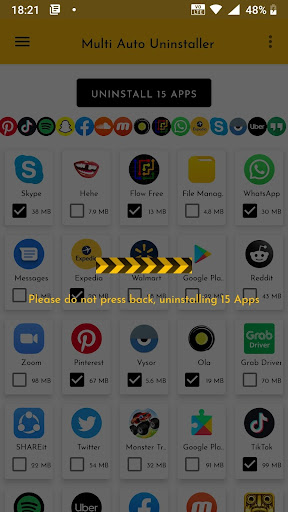 User needs to just click only once for all the selected apps and all apps would get uninstalled in one go.