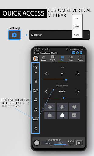 - Customizable Minibar to view and speed click to a particular Setting