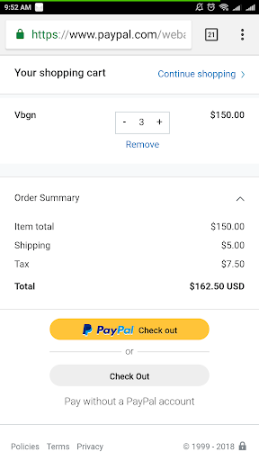 *Generate PayPal checkout options: