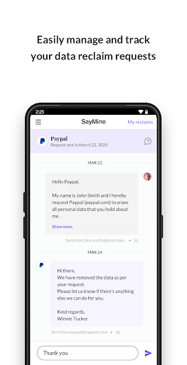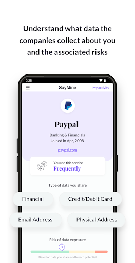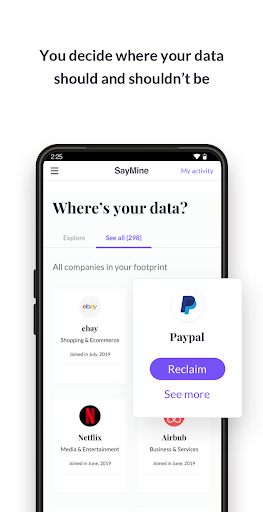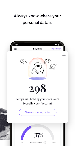 SayMine is the smart data assistant that allows you to always know where your data is. You decide where your data should or shouldn't be, and we'll make it happen. With SayMine you can enjoy the internet, feeling safe and secure.