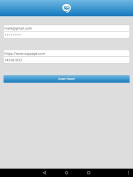 Saypage Lite allows you to join online Saypage meeting rooms from your Android device over wifi and 3G/4G connections. Simply enter your login details and the meeting room ID to be connected in high quality WebRTC audio video. You'll also be able to see the images, videos and screens being shared by web based participants.