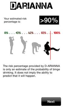 The risk percentage provided by D-ARIANNA is only an estimate of the probability of binge drinking. It does not imply the ability to predict that it will happen.