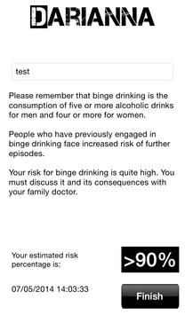 D-ARIANNA provides an evidence based current risk estimate for binge drinking. Binge drinking is common among young people but often relevant risk is not recognized. D-ARIANNA, as an attractive eHealth app for young people, may be useful to enhance awareness of this problem.