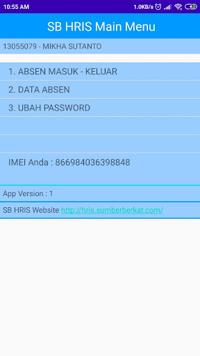 Aplikasi HRIS Mobile ini adalah untuk keperluan internal karyawan Sumber Berkat. Di dalam aplikasi ini memiliki fungsi-fungsi: - Absensi - Permohonan perijinan - Approval Perijinan