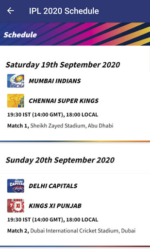 IPL 2020 UAE LIVE - Score, Schedule, Points Table