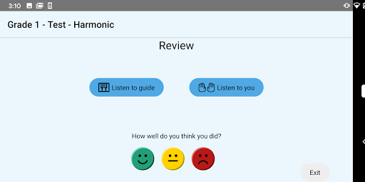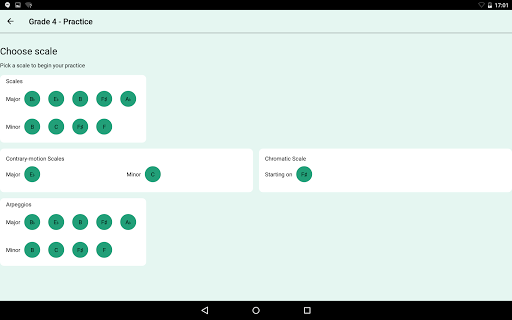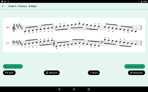 In need of a quick warm-up, or fancy practising exam-style? The Test area selects a series of scales from the requirements for you to perform. Use the record function, reflect critically and rate your performance.