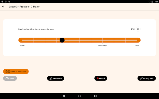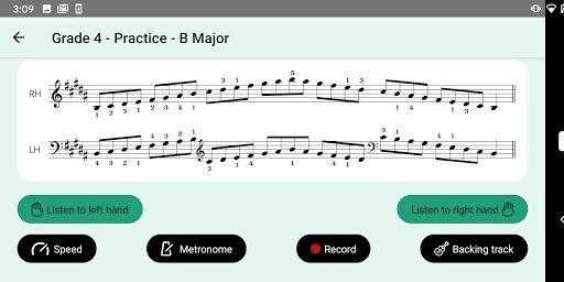 • A built-in metronome to help you see how close you are to exam tempo. Start slow and gradually build up the speed!