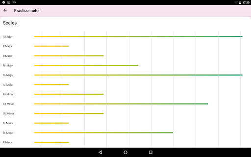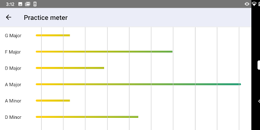 The more you use Piano Scales Trainer, the smarter it gets. Head on over to the Practice Meter to see at a glance which scales you’re doing well at, and which ones need more practice.